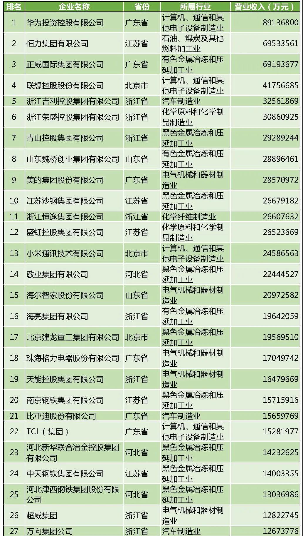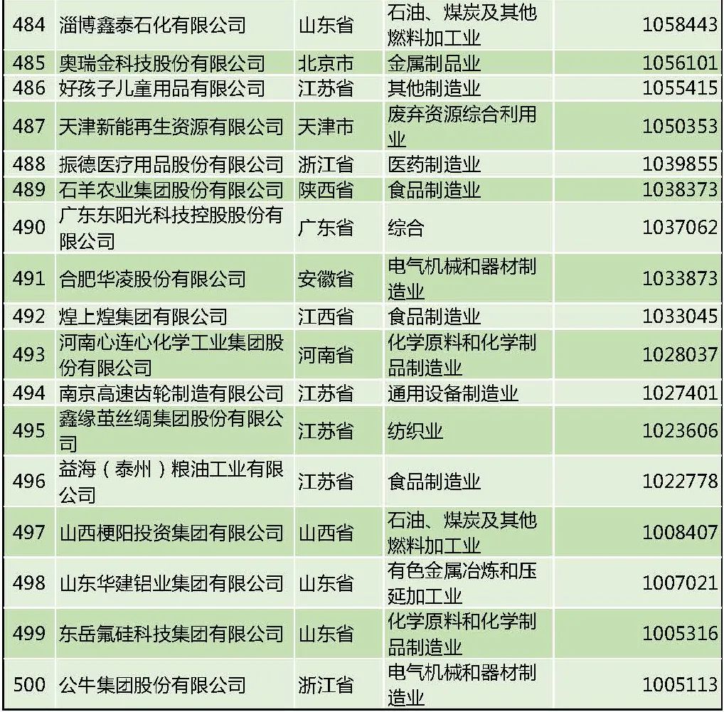 2021中國制造業(yè)民營企業(yè)500強(qiáng)榜單